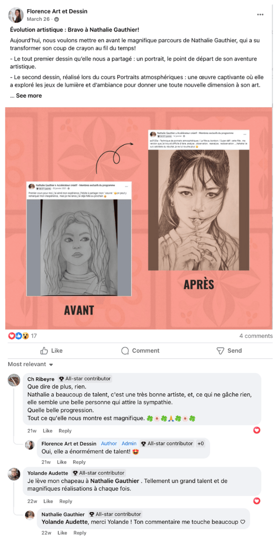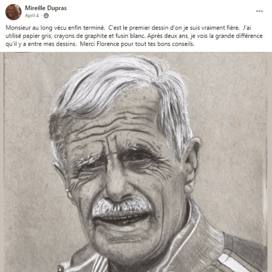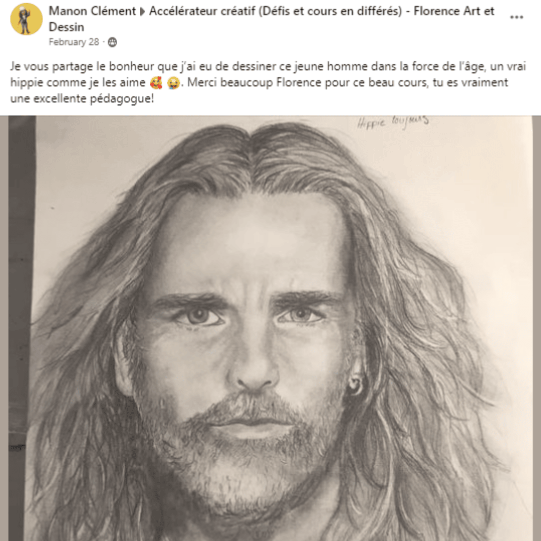 ⭐⭐⭐⭐⭐ 𝐂𝐎𝐔𝐏𝐎𝐍 𝐒𝐏𝐄𝐂𝐈𝐀𝐋 5𝟬% 𝗢𝗙𝗙 ( ̶𝗥̶𝗲̶𝗴̶.̶ ̶ ̶6̶5̶Є̶ 𝗦𝗲𝘂𝗹𝗲𝗺𝗲𝗻𝘁 32Є ): Ce cours est le complément idéal à ton programme : un projet de plus grande envergure à réaliser tranquillement tout au long des prochaines semaines, à ton rythme. Tu y apprendras à donner du volume et de la personnalité à tes portraits grâce aux jeux d’ombre et de lumière, et à ces petits détails qui font toute la différence. Guidée par Florence pendant 4h, tu construiras un visage expressif, apprendras à texturer la peau (oui, même les taches de rousseur!), à rendre la douceur des cheveux et à reproduire la matière d’un vêtement en tricot. Une occasion en or pour affiner ton sens de l’observation, gagner en précision, et surtout... faire évoluer ton style!